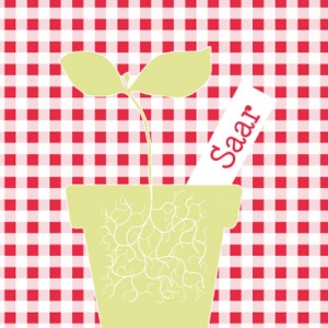 Op dit kaartje een zaailing, een klein plantje als symbool voor de pasgeboren baby.
